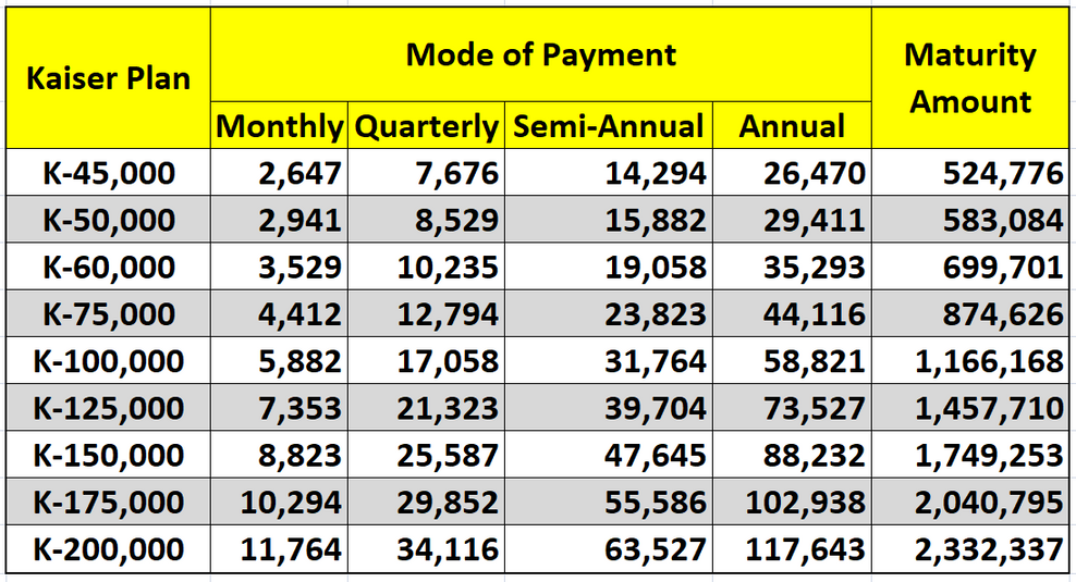 Kaiser Plan | Total Maturity |