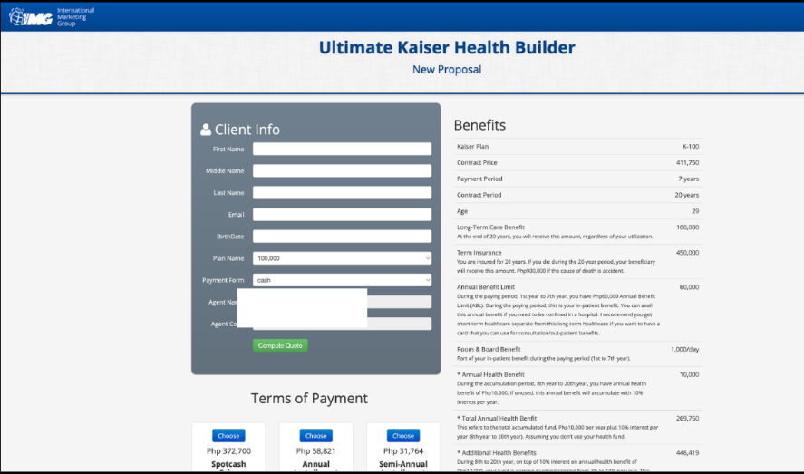 Sample Kaiser Plan K-100
